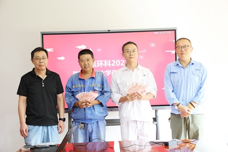 随后,,,,,工会主席包峰和工会副主席王永强司理为子女金榜题名的员工揭晓了奖励金并合影留念。。。。。。。。